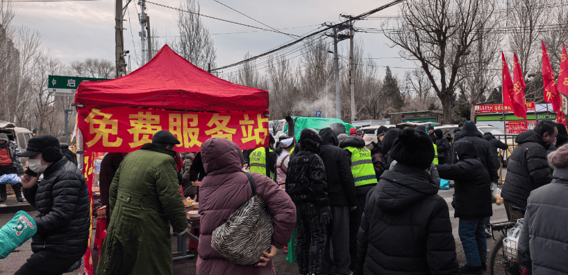 春节前夕,沈阳市铁西区赞工早市便民服务措施再次升级,由过去的室内“游客驿站”升级为室外的便民服务中心,扩大服务范围和服务对象,增加便民服务项目和服务功能,为游客和市民免费提供的粥、现磨豆浆和红糖姜水等热饮热食,同时也设立了应急药箱,塑料袋,充气筒,爱心暖宝,免费寄存等多项服务。
